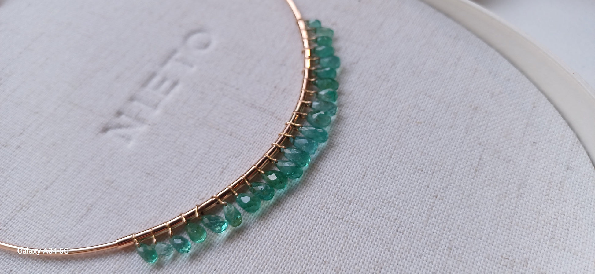 Collar Choker Oro 18K rojo con gotas briollet de Esmeralda.