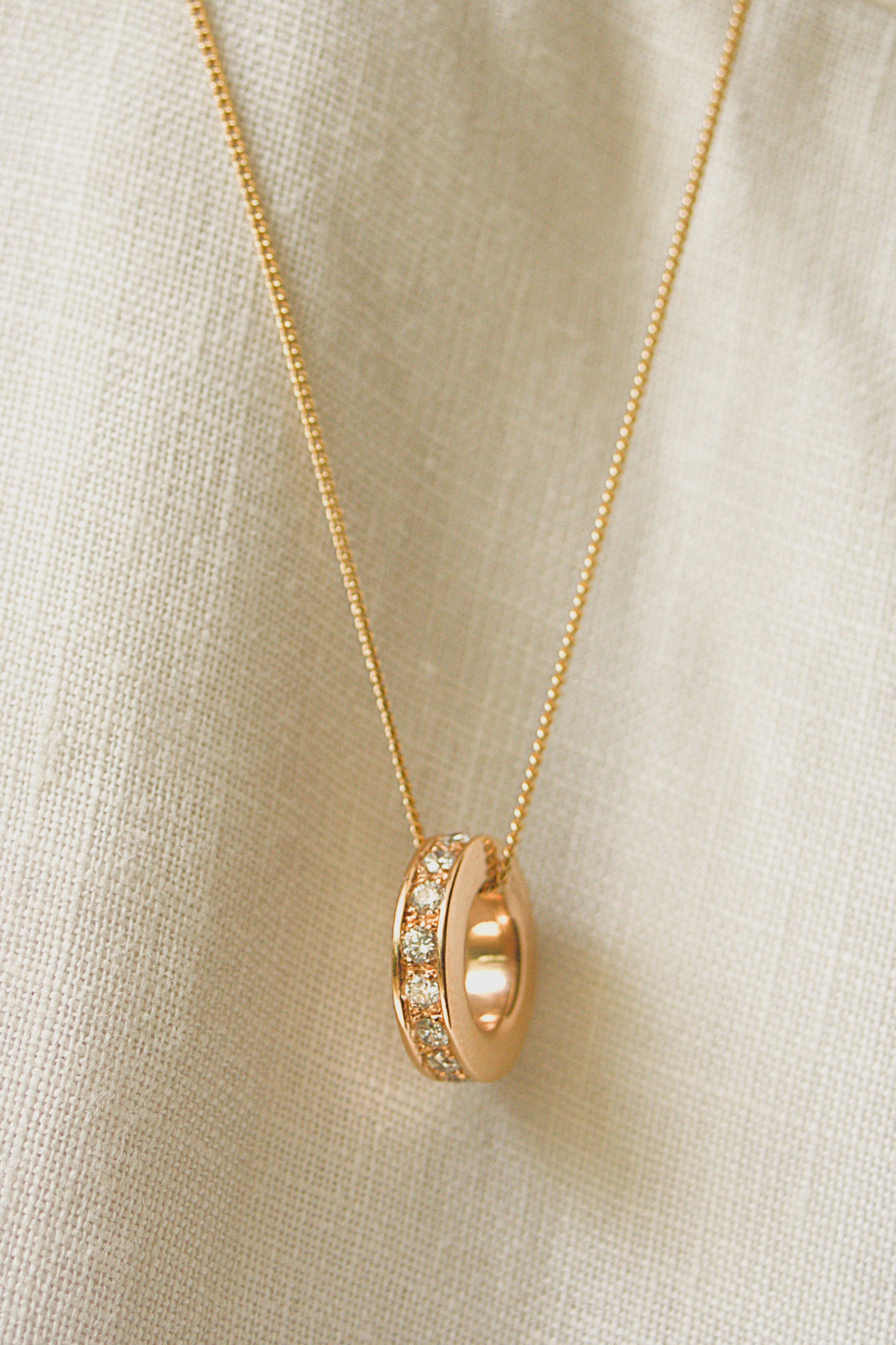 Halo de oro rojo de 18K circundado de 1,12 kilates en diamantes talla brillante.